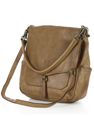 Włoska torebka skórzana z kieszenią z przodu retro bag handmade - MARCO MAZZINI brąz camel