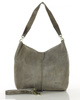 Torebka zamszowa shopperka skórzana frędzle boho beżowa taupe - MARCO MAZZINI
