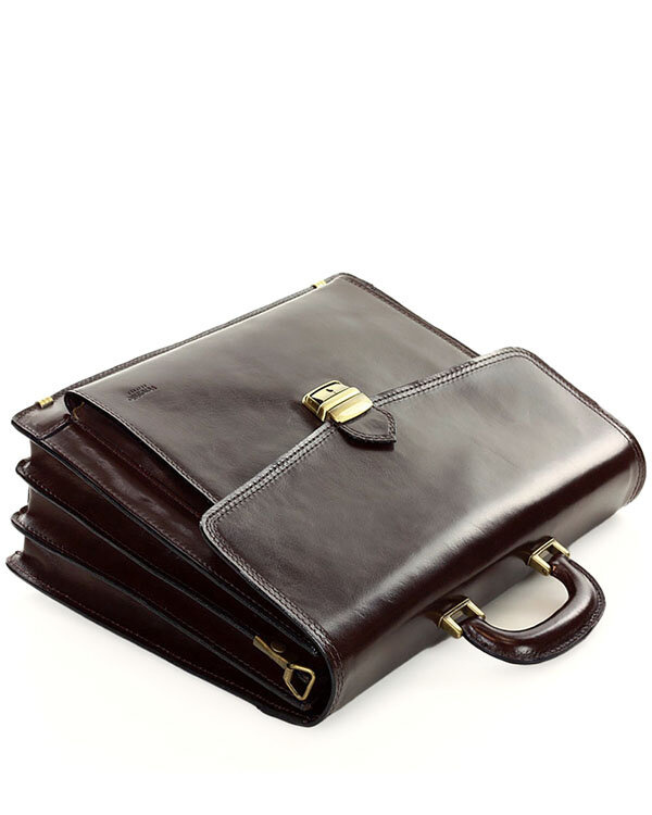 Elegancki design i precyzyjne wykonanie sprawiają, że teczka męska skórzana trzykomorowa to nie tylko praktyczny, ale także modny dodatek. Zestawiona z profesjonalnym strojem biznesowym, teczka doda każdemu mężczyźnie pewności siebie i stylowego wyglądu. Teczka skórzana została zaprojektowana w taki sposób, aby zapewnić maksymalną funkcjonalność i praktyczność. Znajdziesz w niej wiele przydatnych komór i kieszeni, które pomogą Ci zorganizować swoje dokumenty, laptopa, długopisy, karty kredytowe i inne drobiazgi. Dzięki temu będziesz miał wszystko, czego potrzebujesz, zawsze pod ręką. Teczka skórzana posiada trzy komory oraz dodatkową dużą, przednią przegrodę z organizerem na karty i długopisy. Dodatkowo z tyłu modelu znajduje się pojemna kieszeń zamykana na suwak. Mocny zamek z blokadą na kluczyk, stopki zabezpieczające dno teczki przed zniszczeniem oraz wygodny uchwyt z okuciem w kolorze mosiądzu to atuty, które zapewnią Ci wygodę i komfort w codziennym użytkowaniu. Dzięki specjalnemu paskowi proponowany model można nosić zarówno w ręku, jak i na ramieniu.