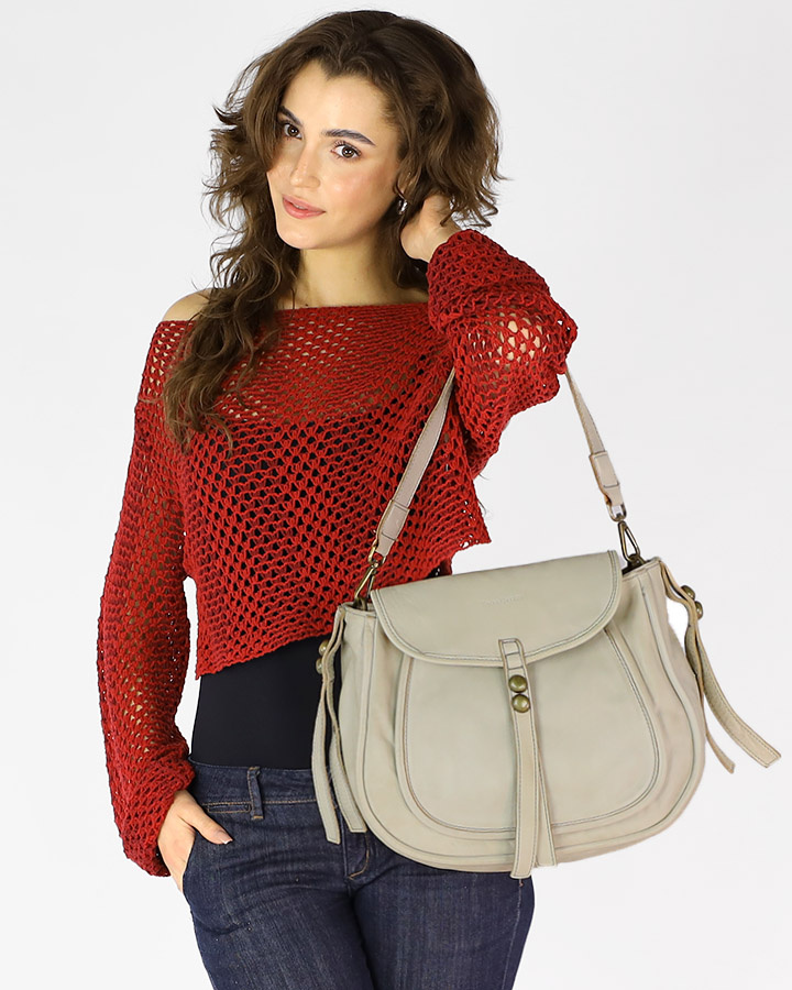 Marco Mazzini Torebka classic saddle bag ze skóry naturalnej na ramie beż taupe
