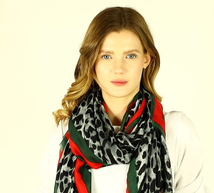 Ciepły szal damski dwustronny z wiskozy słoneczniki - zielony